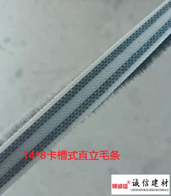 本款毛條為特殊規格:14*8,即毛條底寬14mm,毛高8mm,底寬突破了平時的12mm,13mm寬度,為我們的門窗密封毛條產品更上一個臺階。